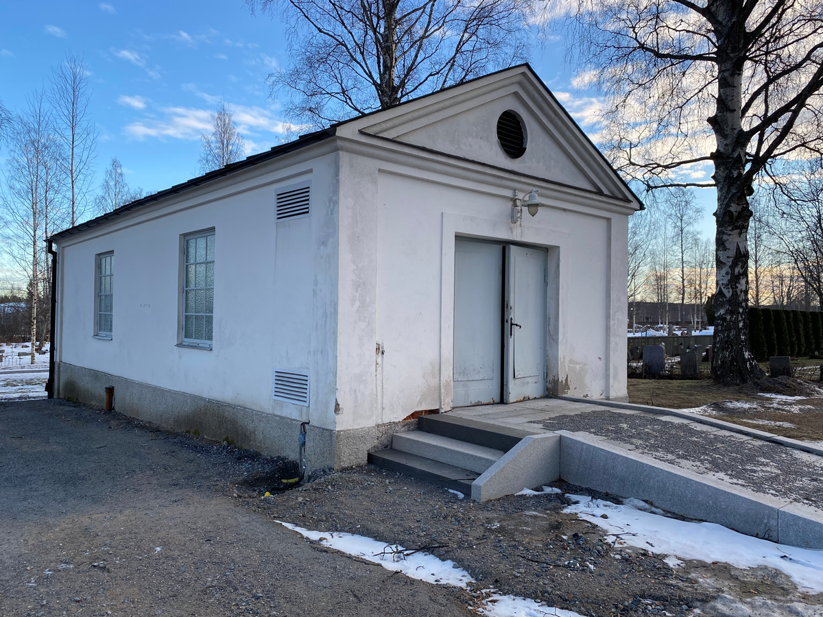 Bisättningshuset vid Ockelbo kyrka sedd från nordväst.