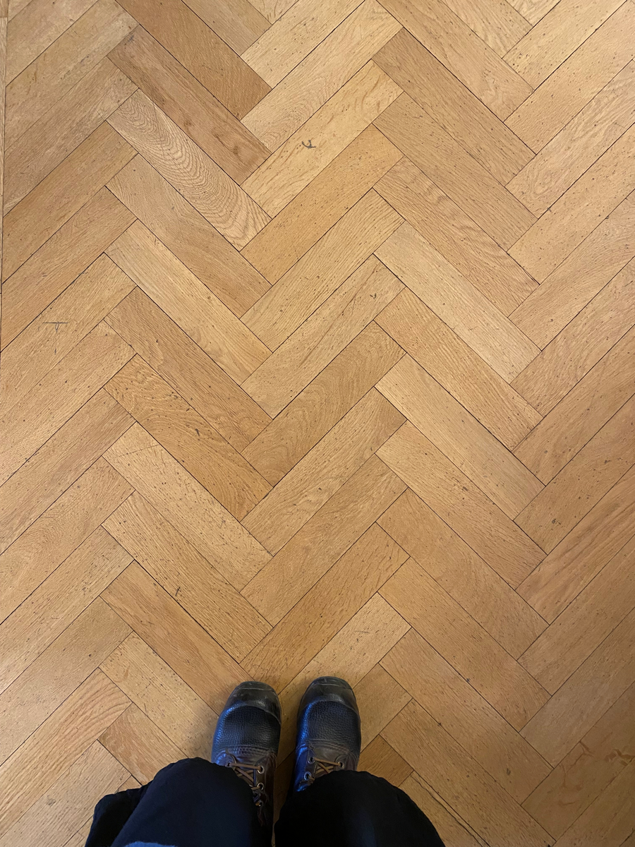 Söderhamns rådhus, sessionssalen, parkettgolv med fris.