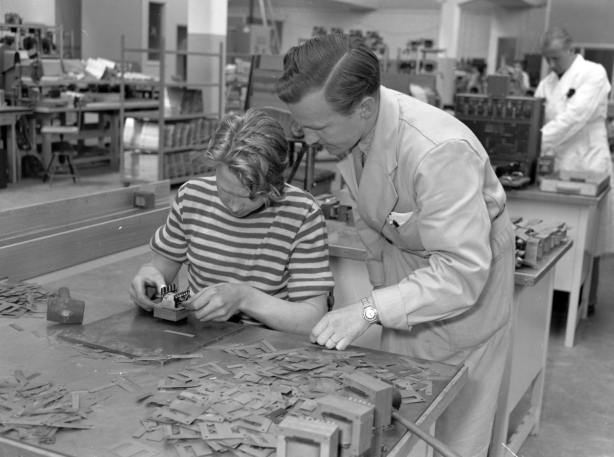 Agas nya fabrik, vid pressvisningen interiört och exteriört. Juli 1950.