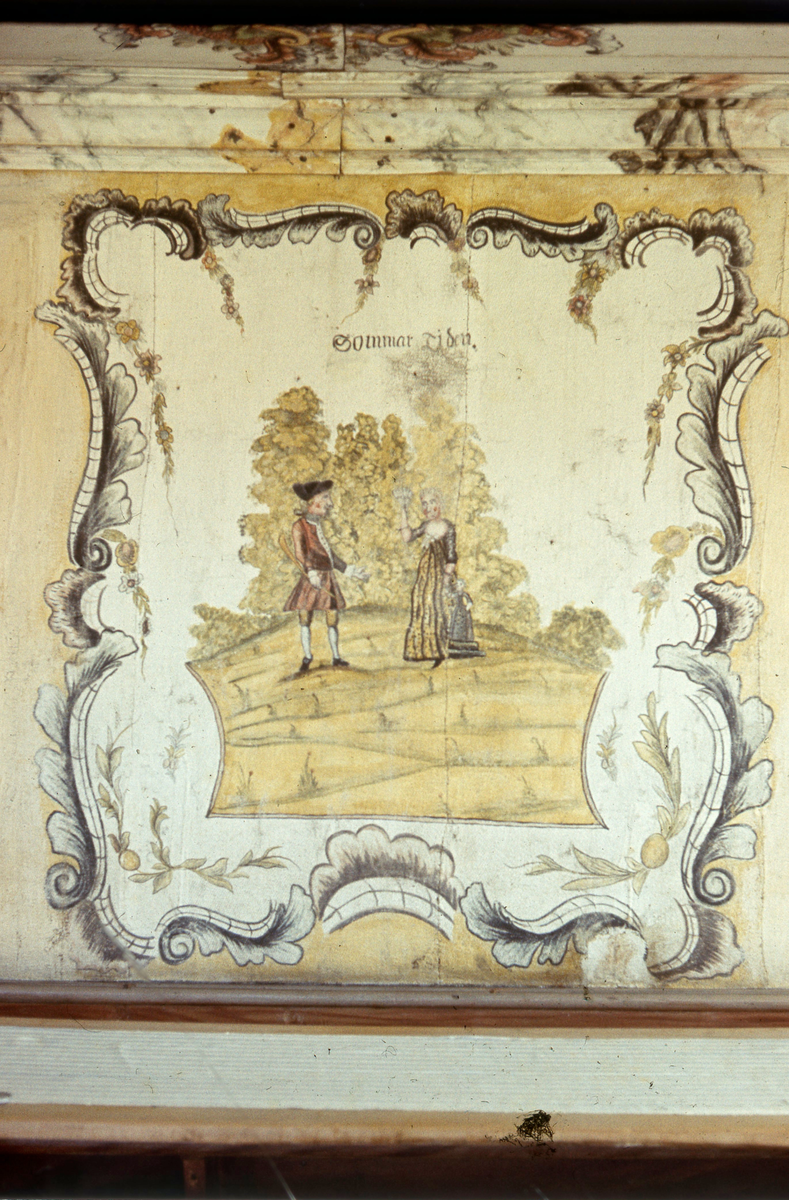 Väggmålning "Sommar tiden". En man, kvinna och ett barn i målningen.