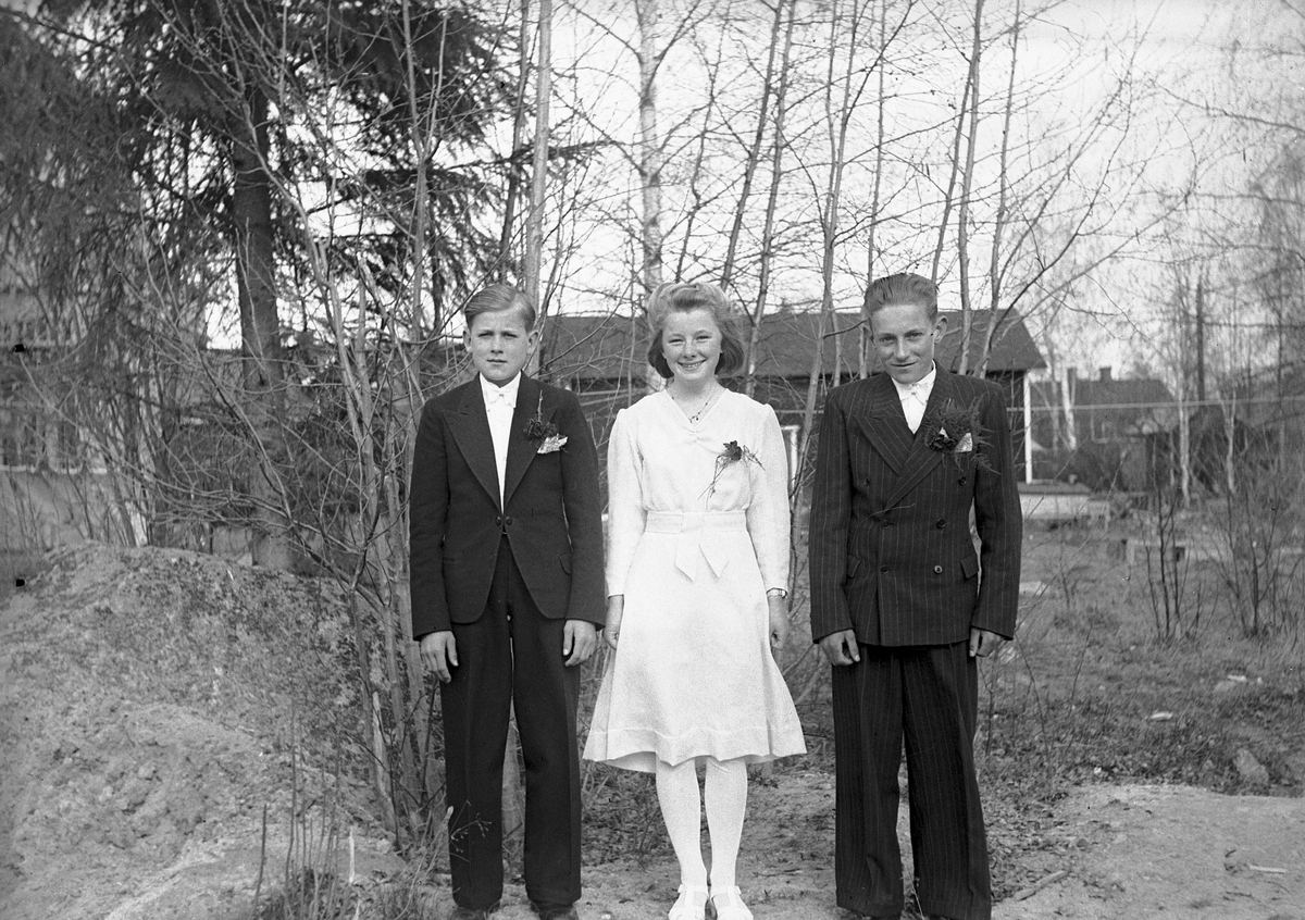 I mitten Gunda Bohman, född Jonsson, Till vänster Olle Skoglund och till höger Allan Pihl