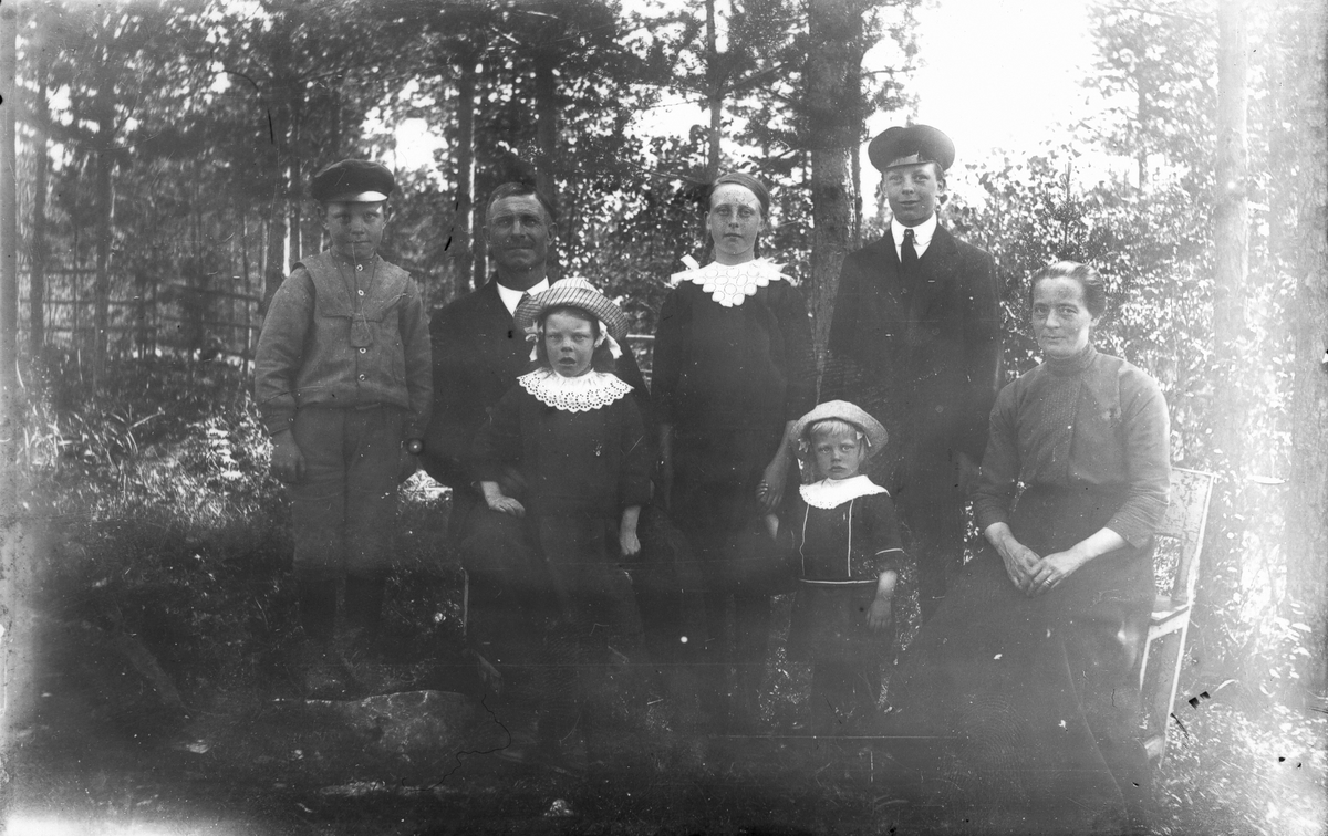 Familjen Wallner, Lenninge 4:51. Från vänster: Jonas född 1907, fadern Per född 1863, Greta född 1910, Anna född 1903, Stina född 1914, Per född 1901 samt modern Anna född 1878. Bilden troligen tagen 1916.