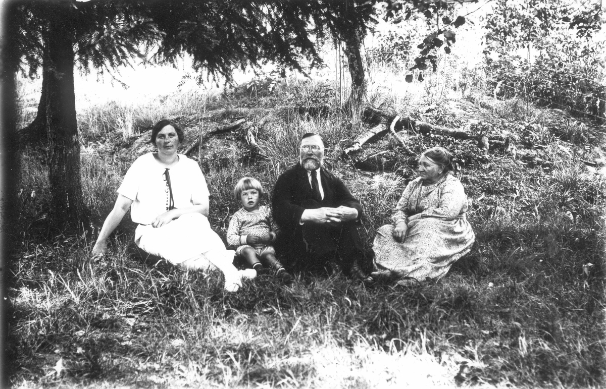 Målar-Astrid med sonen Lars och föräldrarna Swanström. Bilden tagen i Långsjö.