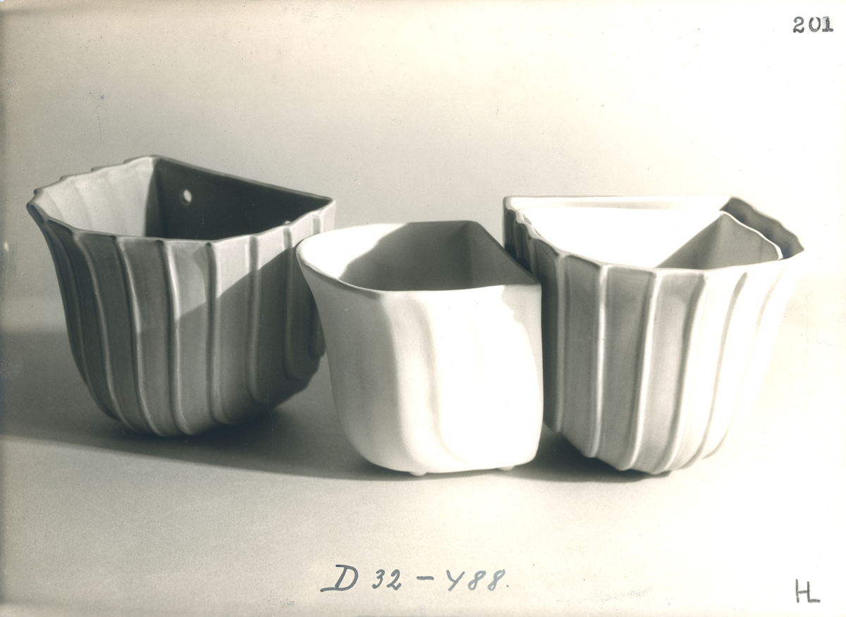 Väggvaser från Bo Fajans, formgivare Ewald Dahlskog, tidigt 1900-tal. Fotografiet är märkt med fotografens signatur i blyerts.