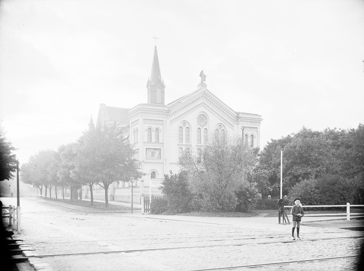 Betlehemskyrkan. Carl Johan Dyfverman, kristusstatyn var väl synlig för tågresenärerna
