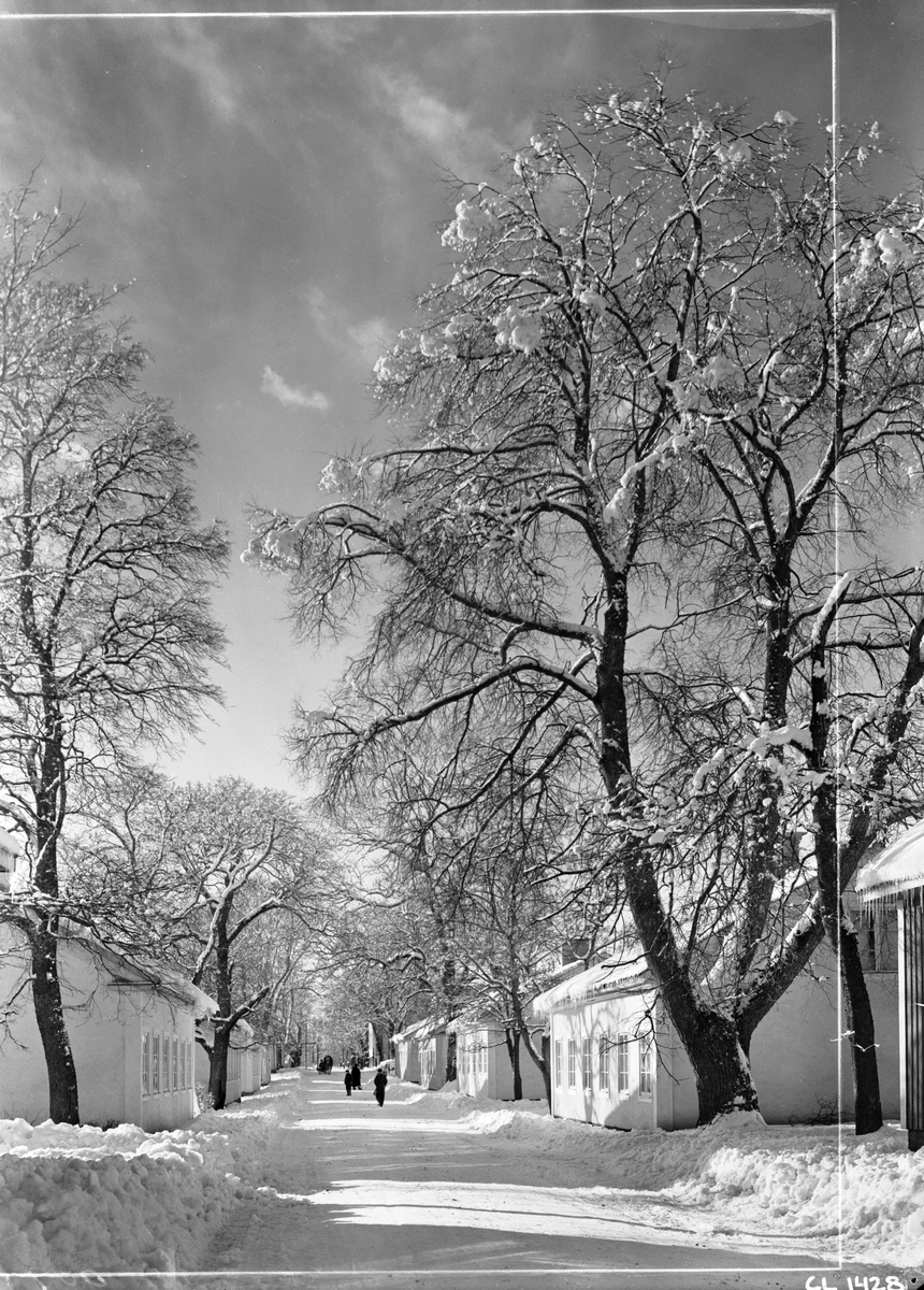 De forna smedsbostäderna har ändrats om till bostäder för skogsarbetare och för dem som arbeta inom jordbruket. Oslättfors skogsmarker förvärvades av Korsnäsbolaget år 1900. Fotot tidigare publicerad Korsnäs Aktiebolag 1955. Fotot var julkort till Korsnäs AB