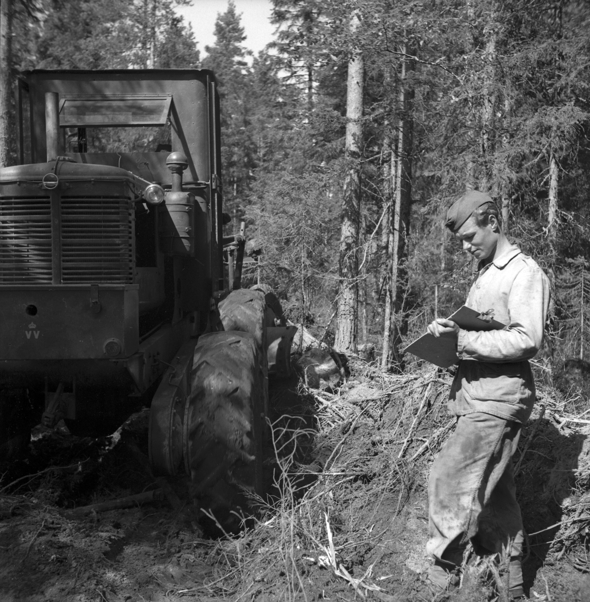 Vägbygge några mil norr om Storvik. Augusti 1950. Reportage för Gefle Dagblad och Norrlands Posten.