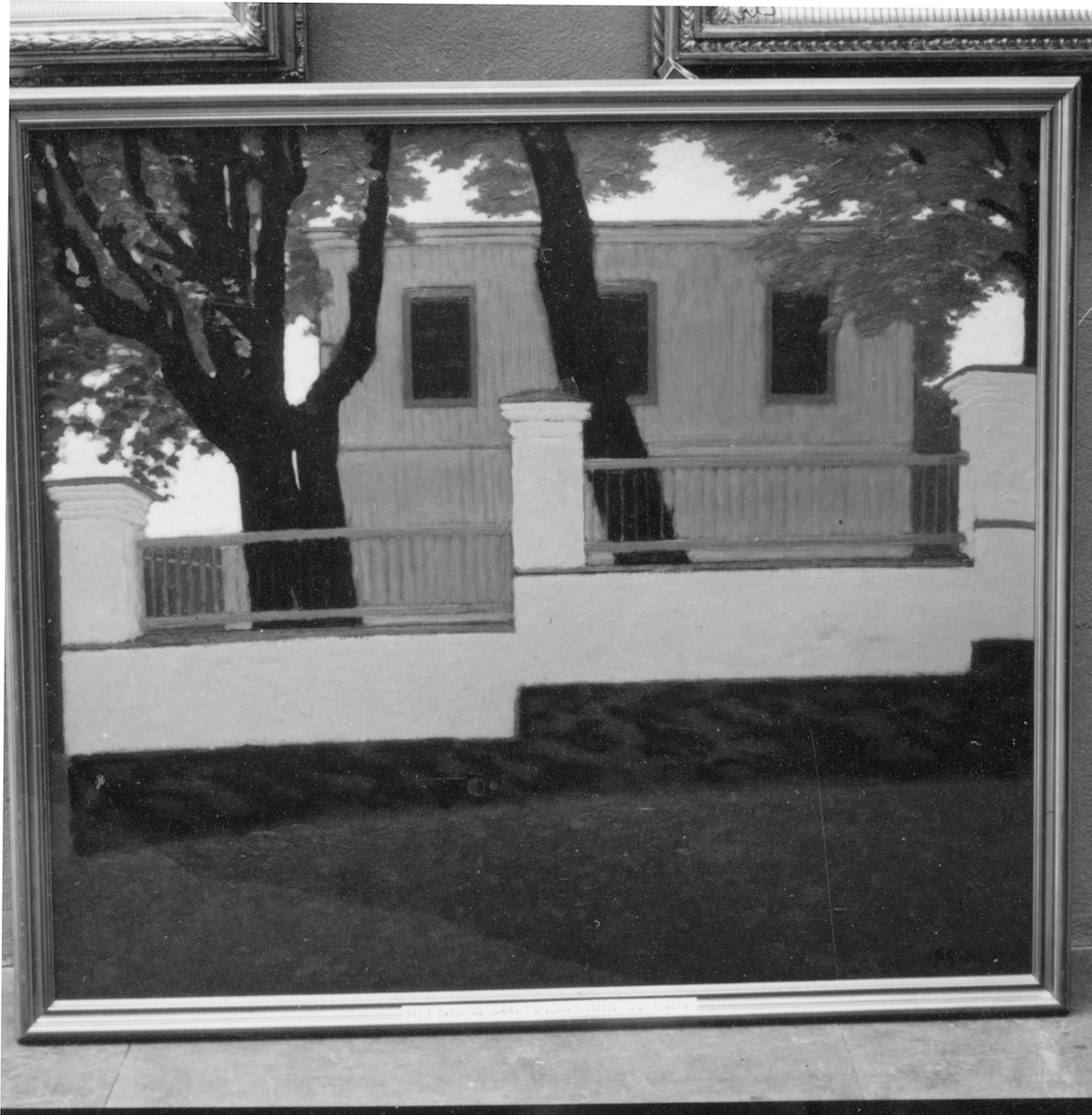 Titel: Pelle Swedlund: "Gammalt borgarhus i Gefle". Oljemålning 88X101 cm.