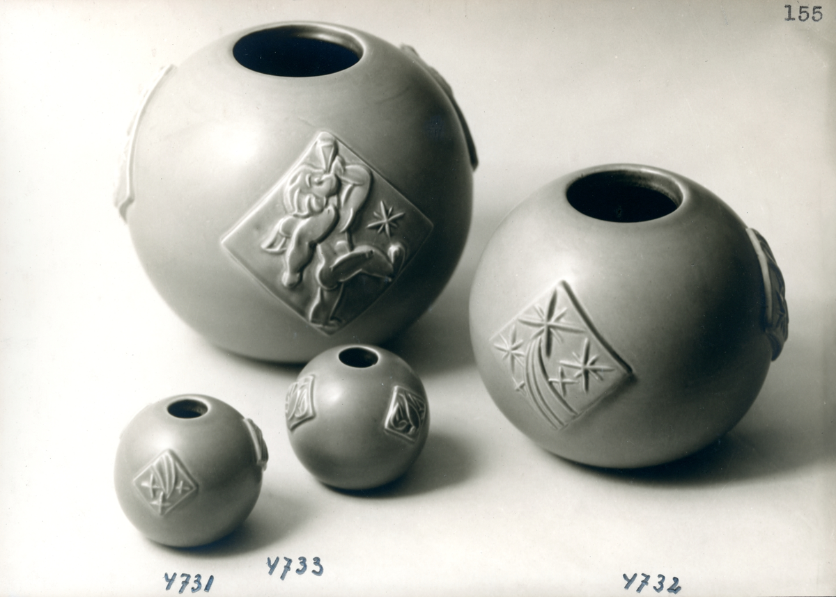 Vaser i olika storlekar från Bo Fajans, formgivare Maggie Wibom, tidigt 1900-tal.