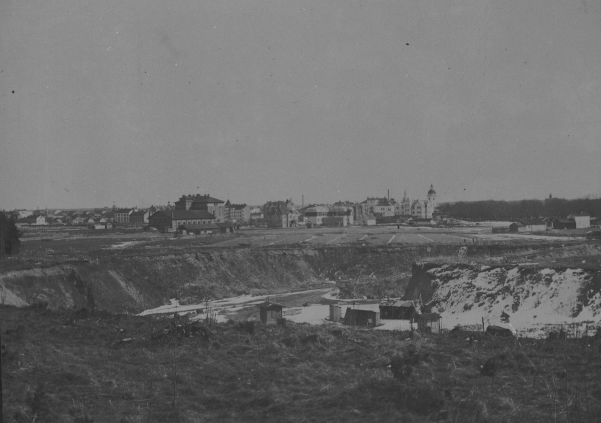 Gefle stad från väster. (stadens grusgrop i förgrunden.)