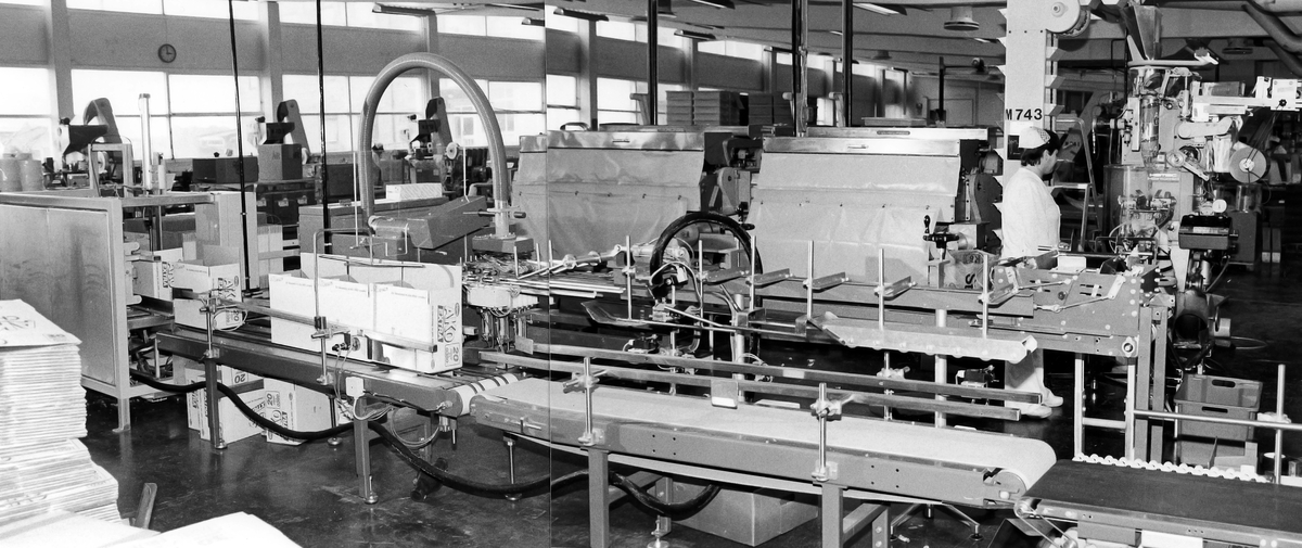 Packmaskin. Ako-kolor packas först i påsar sedan i kartonger.