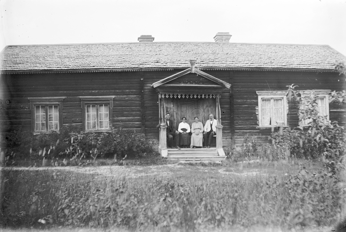 Familjen Bergman samlad på brokvisten hemma i gården Järns, Långhed.