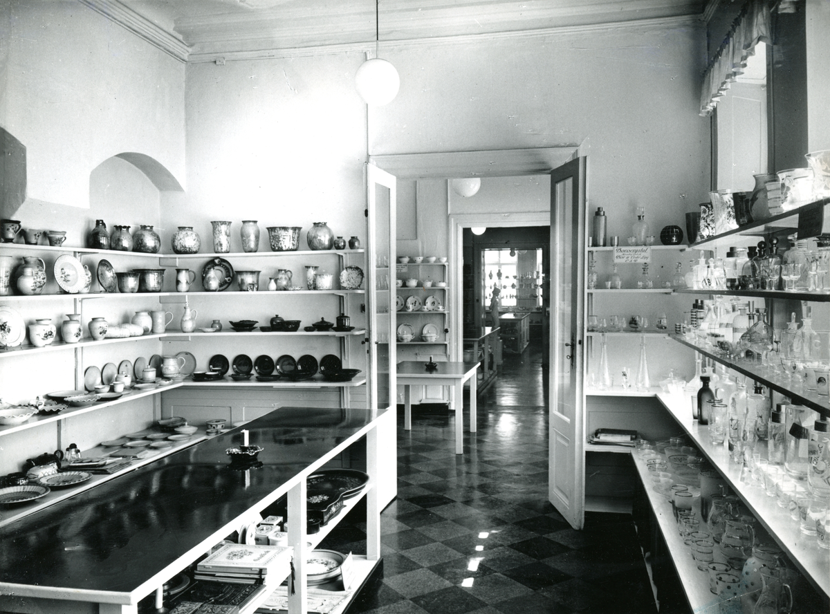 Fotografi från album tillhörandes Bo Fajans. Till vänster; keramik. Till höger; glas, bland annat från det tjeckiska märket Borocrystal (idag Crystalex).