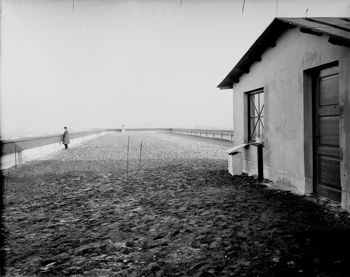 Gävle Ångväveri AB. Mannen på taket. Gefle Ångväfveri AB startades 1862 av Eric Sjöström. Företaget flyttade 1878 till Åkargatan med plats för 100 vävstolar och en ångkraftanläggning för driften. 1912 blev Hugo Müller disponent och lät uppföra en ny byggnad som stod klar 1918 och var mycket modern i utformning och konstruktion. Kvarteret byggdes ut 1927, med färgeri och 1934 med sidenväveri.