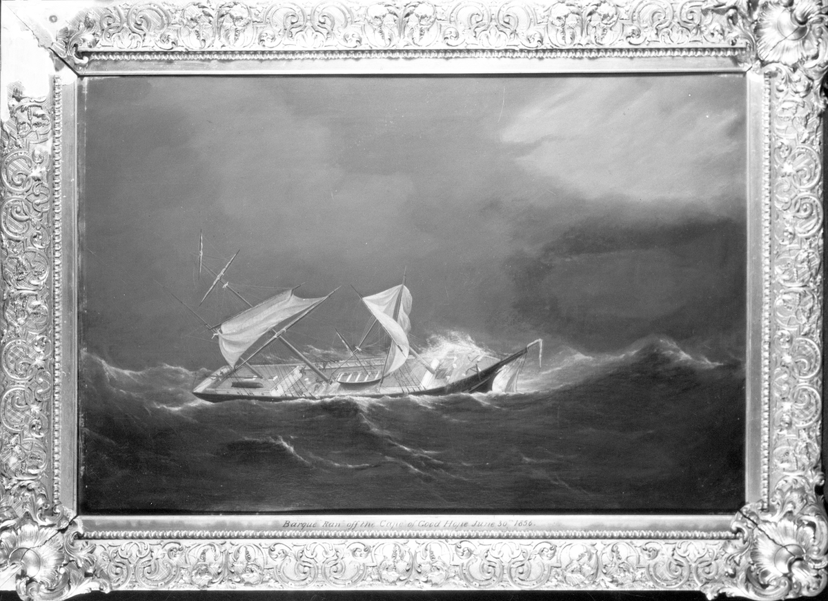 Barken "Ran" vid Goda Hoppsuden år 1856. Oljemålning. Fartygsutställningen i Gävle år 1933.