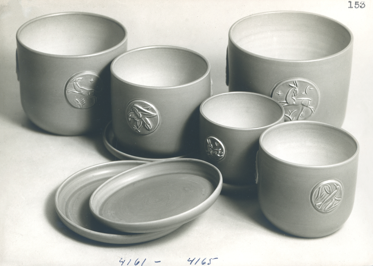 Krukor av olika storlekar från Bo Fajans, formgivare Eva Jancke-Björk, tidigt 1900-tal.