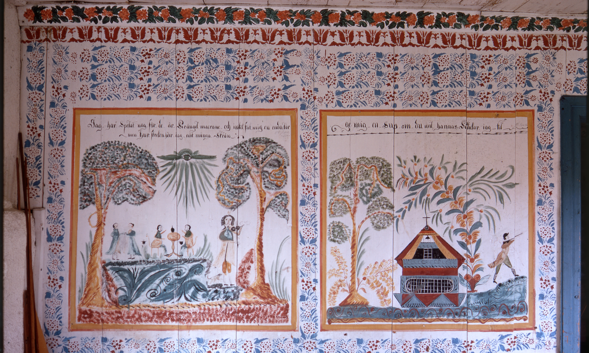 Väggmålningar. "Jag har spelat nog för..." och "ge mig en sup om du vil...".