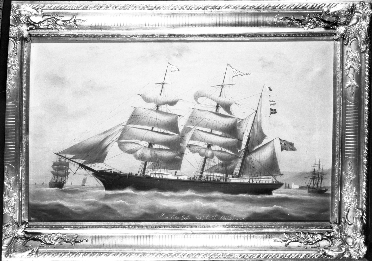 "Peru" från Gefle. Oljemålning. Fartygsutställningen i Gävle år 1933. Ägare Gävle Fartygsbefälhavaresällskap.