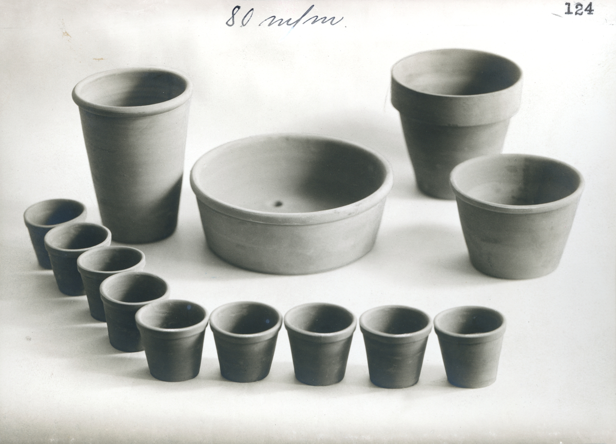 Krukor i olika storlekar från Bo Fajans, tidigt 1900-tal.