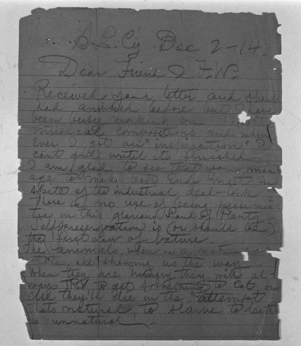 Titel: Reprofoto av brev som Joe Hill (Joel Hägglund) skrivit, 2 december 1914.