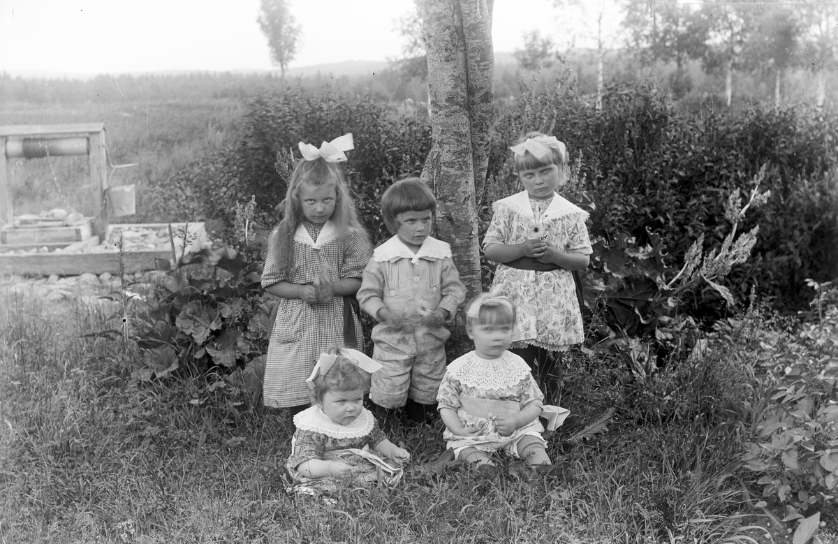 Stående till vänster Linnéa Sundkvist, Katrineberg och till höger dottern till Johan Andersson i Jansbo.