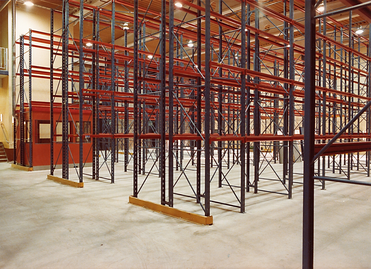 Pallställage mred hyllfack i nya lagret på F.Ahlgrens Tekniska fabrik i Gävle.