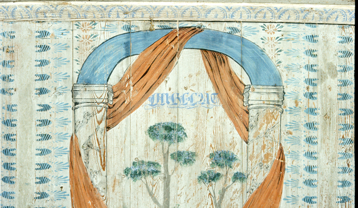 Väggmålning i s.k. Farmorsstugan, Pallars. "Mållat".