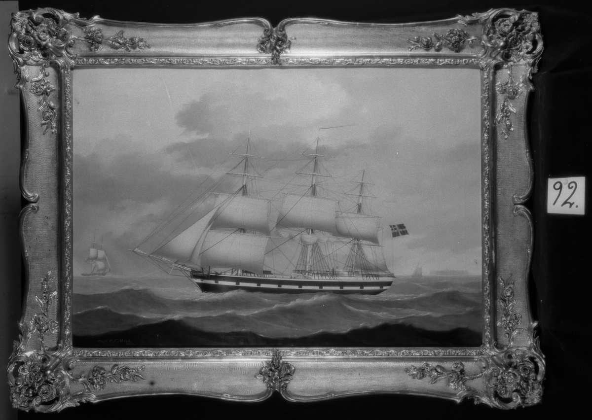 Fullriggat skepp "Oskar I ". Oljemålning. Fartygsutställningen i Gävle år 1933.