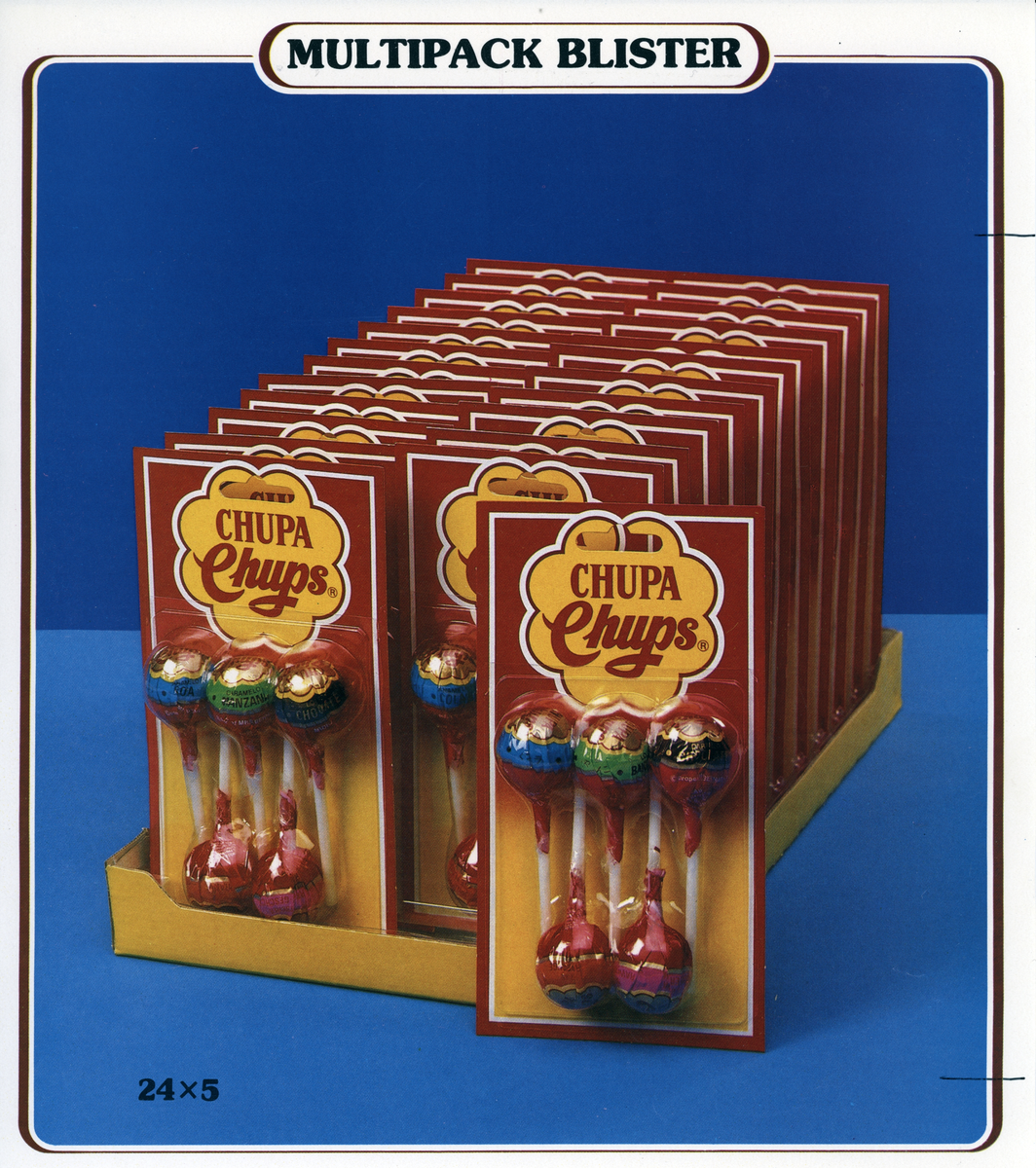 Titel: Chupa chups multi pack blister. Godisklubbor i 5- pack med färgglada omsklagspapper, vacuumpackade och uppradade i säljställ.