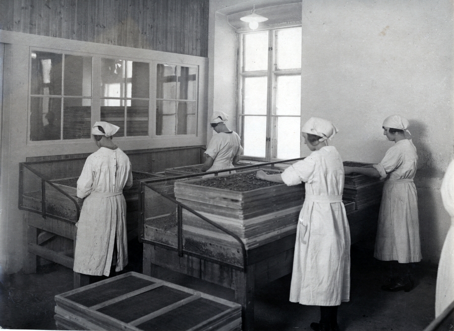 Tablettsorteringsrum. Felaktiga och ojämna tabletter sorteras bort.