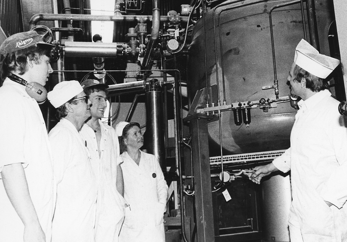 Kokeriet. Från vänster: Olle Forsström, Bo Örman, Björn Lilja, Gerd Måbrink samt Harry Schittenheim som var kemist.