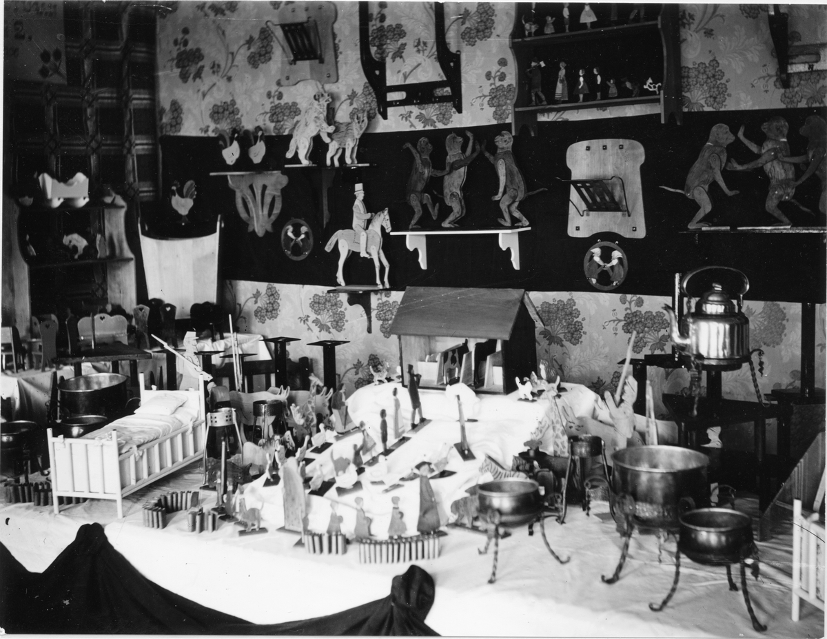 Interiörbild från arbetsstugan i kvarteret Finland.