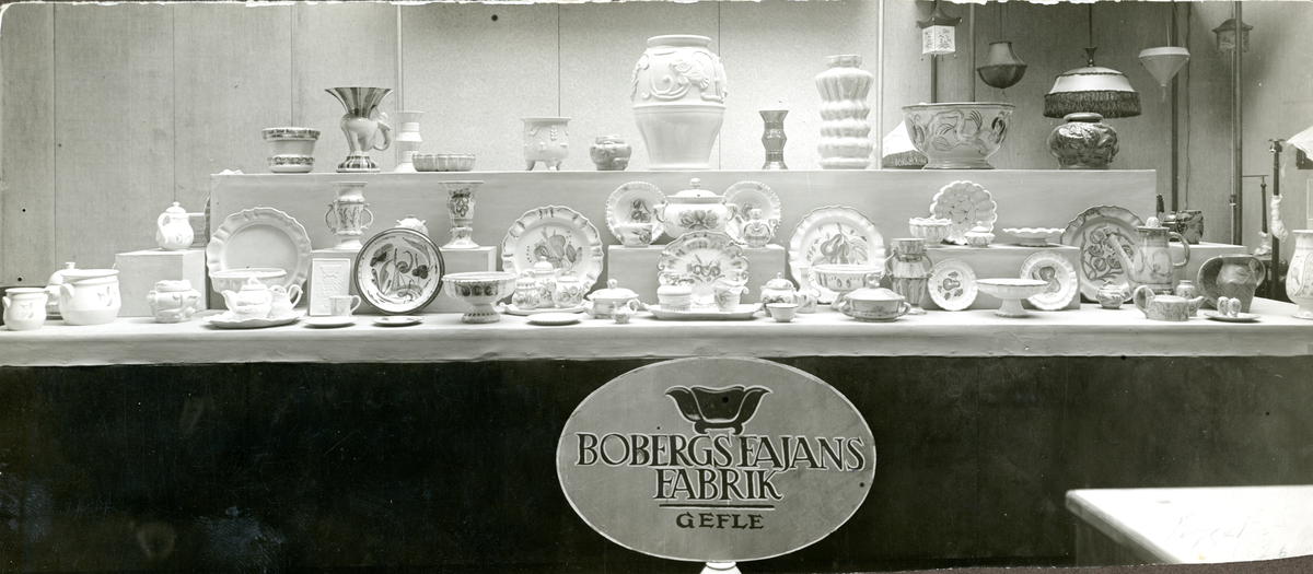 Utställning av keramik från Bobergs Fajans Fabrik.