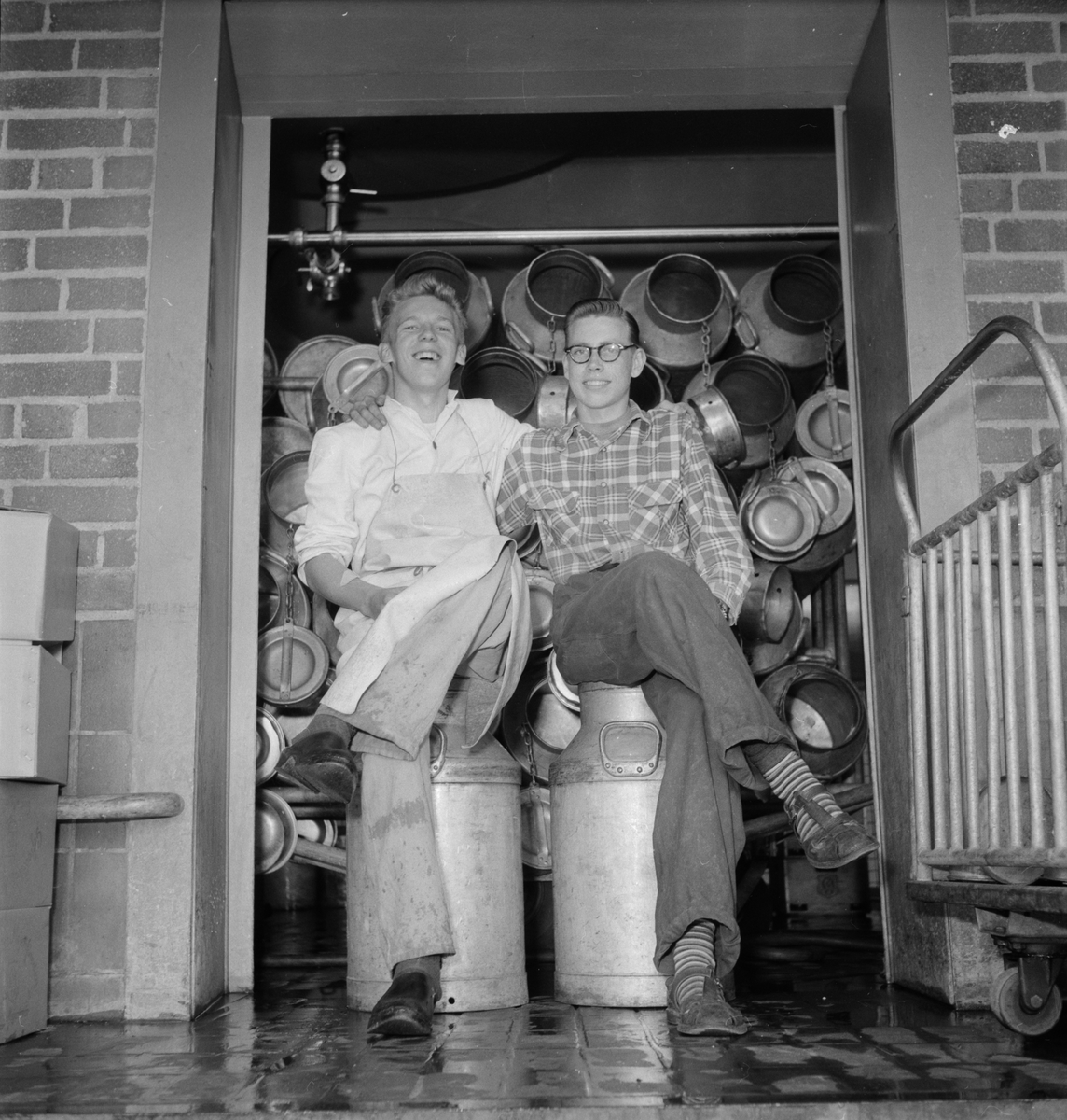 Feriearbetarna Lars-Einar Jansson och Ingemar Myhrberg, studerande vid Läroverket.