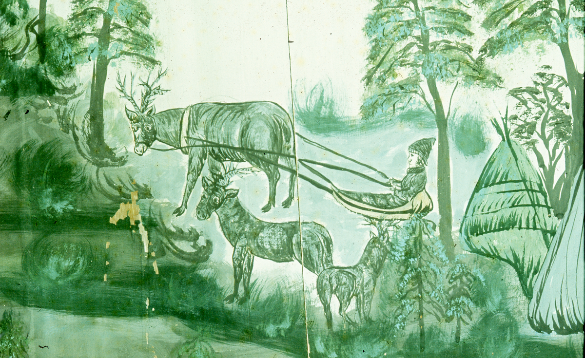 Detaljbild av väggmålning "Lapmarkken" (Lappmarken).