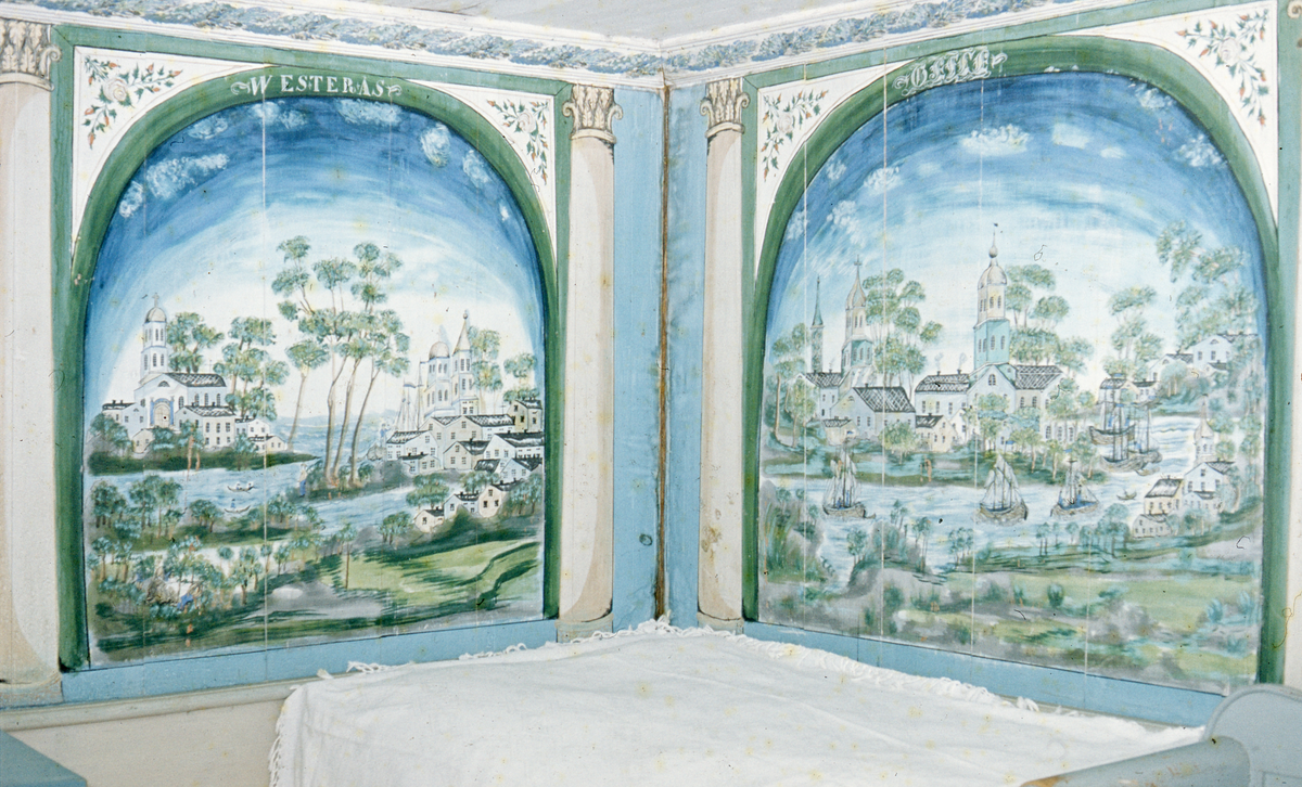 Väggmålningar. T.v. "Westerås", t.h. "Gefle".