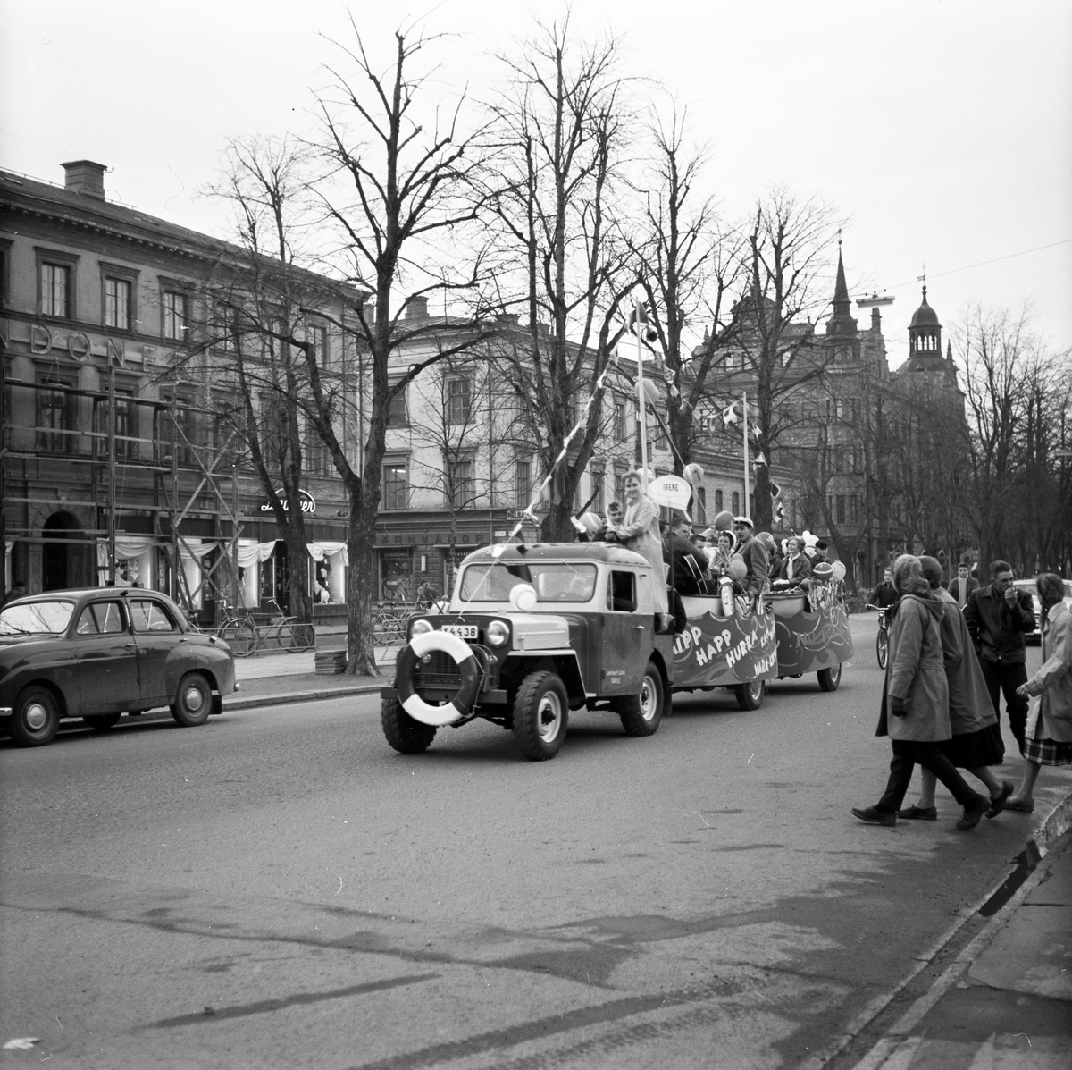 Studentfirande, Irene Östberg på studentflak som efterliknats en båt på havet