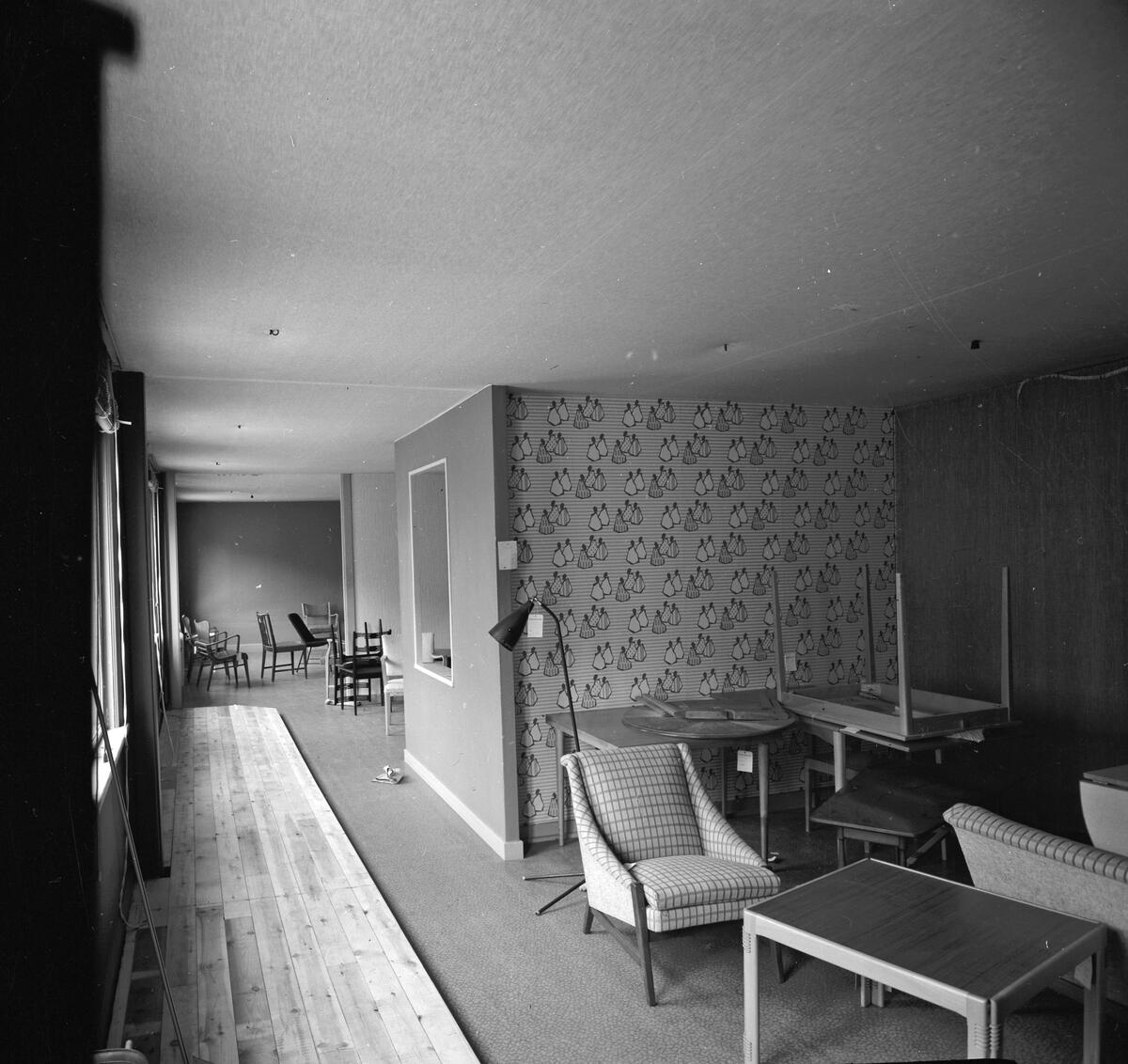 Möbelproduktion AB, försäljningslokal med bord, stolar och fotöljer