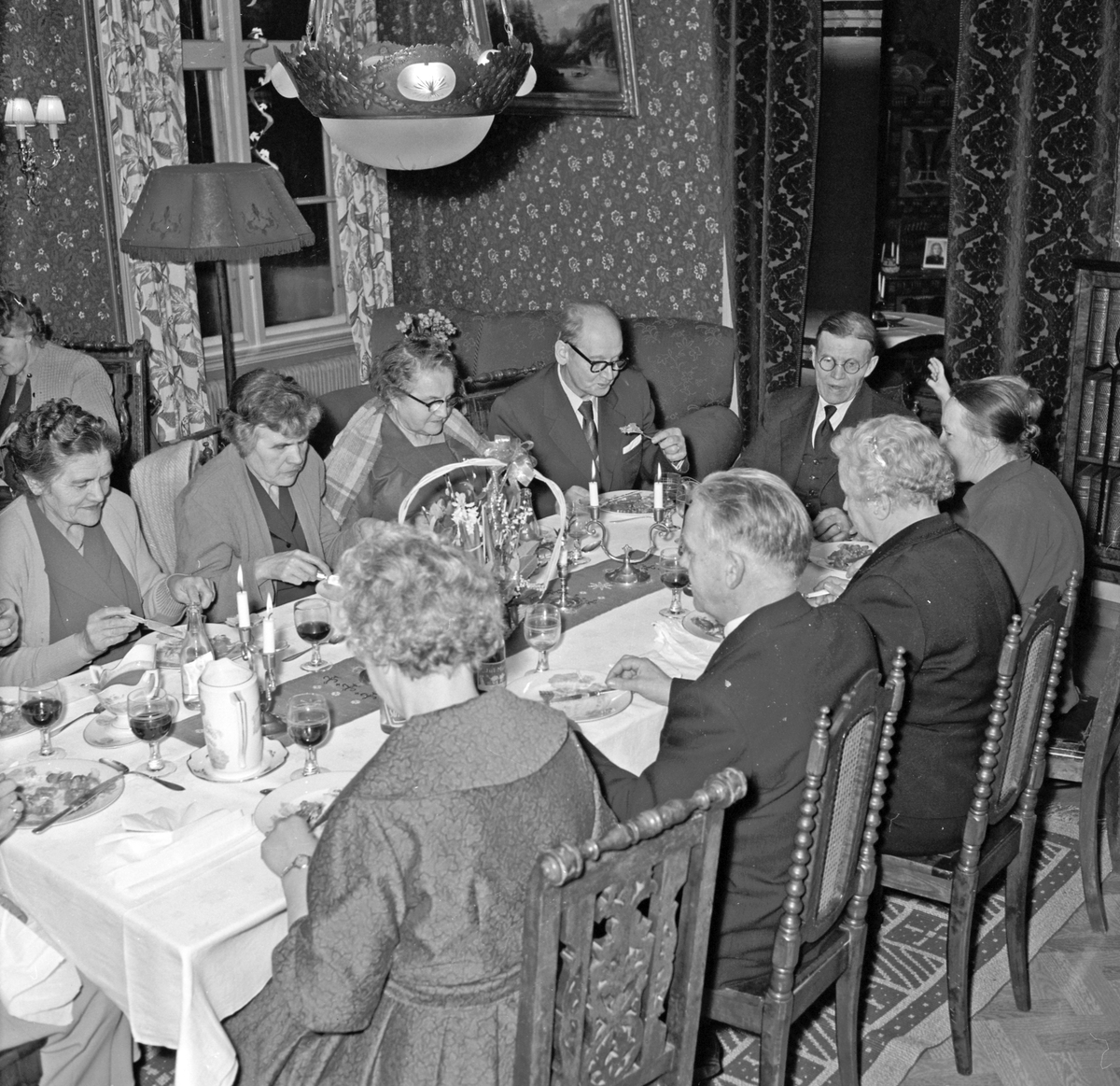 70-årsfirande, Urmakaren Vicktor Eriksson (vid bordets huvudände) omgiven av gäster