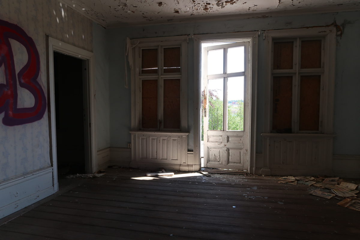 Villa Sjötorp, sommarvilla, fönster, panel, tapet, spegeldörr