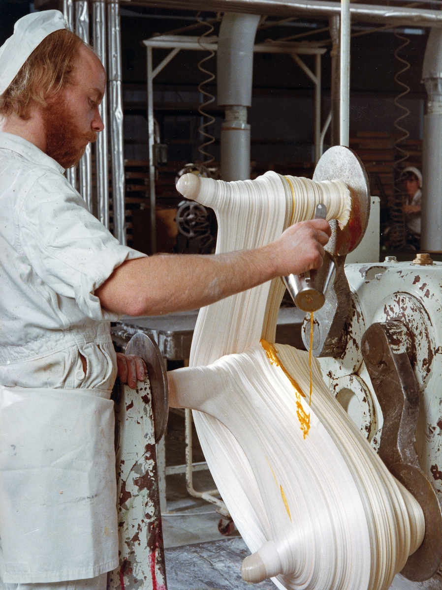 Konfektyravdelningen vid F. Ahlgrens Tekniska fabrik i Gävle. Kolamaskin.