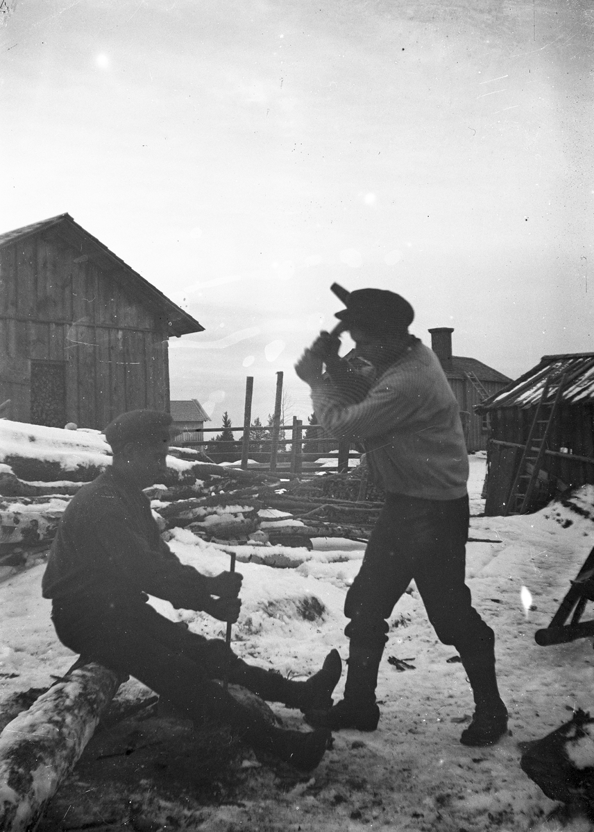 Två män hugger i sten