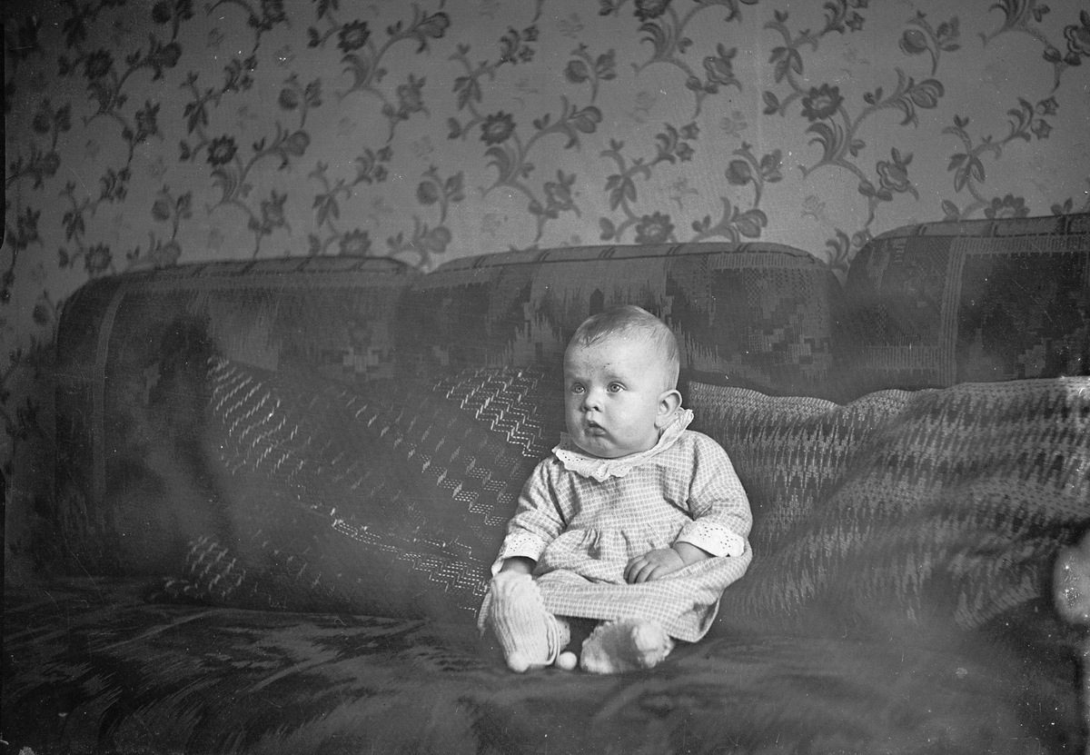En liten flicka i soffan