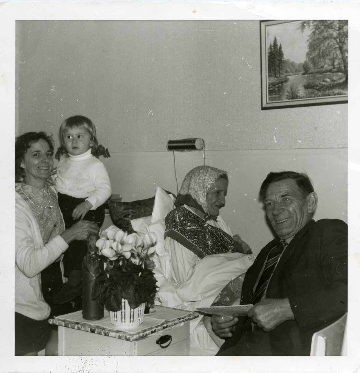 Mormor Anna Gretas 95-årsdag (oktober). Från vänster Greta Westberg med sonen Lars Göran, Anna Greta Westberg och Bror Westberg.