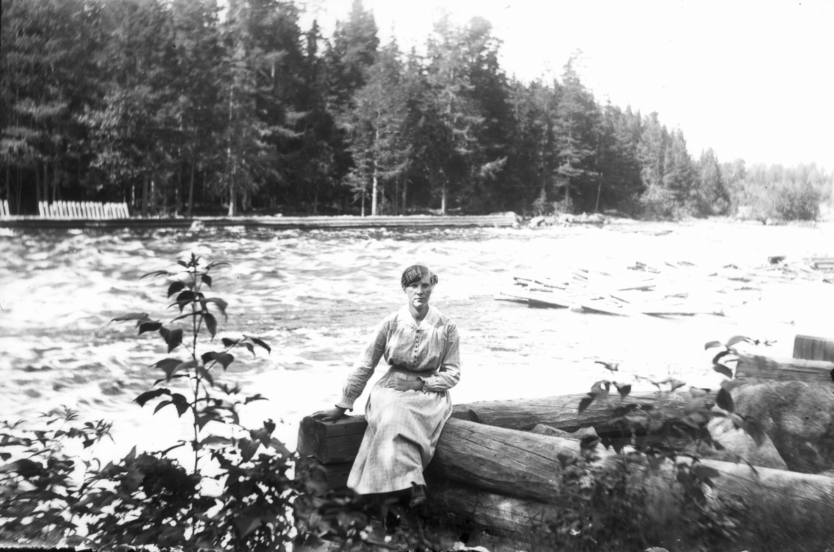 Okänd kvinna vid forsande älv.