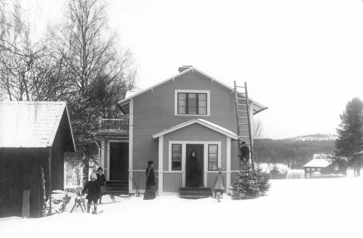Sven Jonssons, Lenninge 1:8. På trappan troligen Anna Norelius (mor till storsångerskan Jenny Norelli), till vänster hennes dotter Anna.