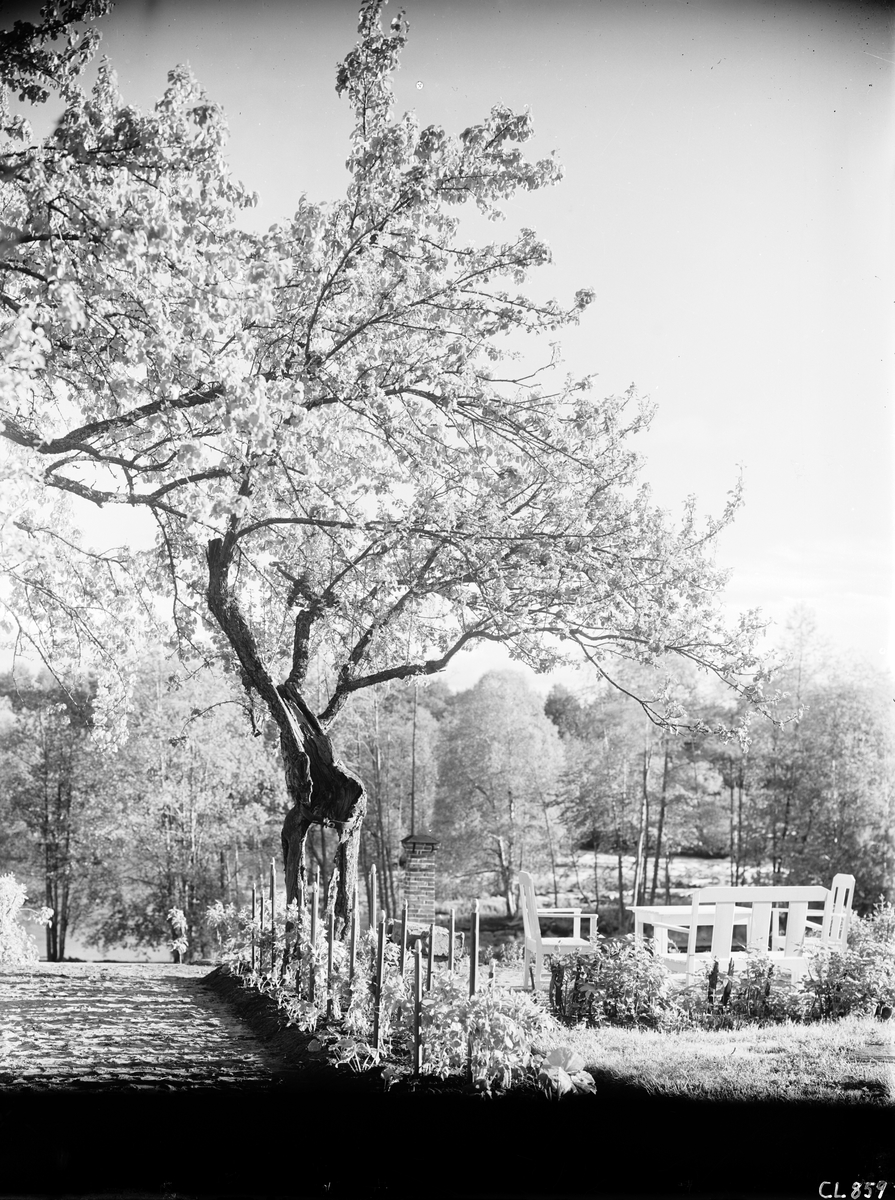 och bodar. Ett gammalt träd som är ihålig och hålls ihop av en rem