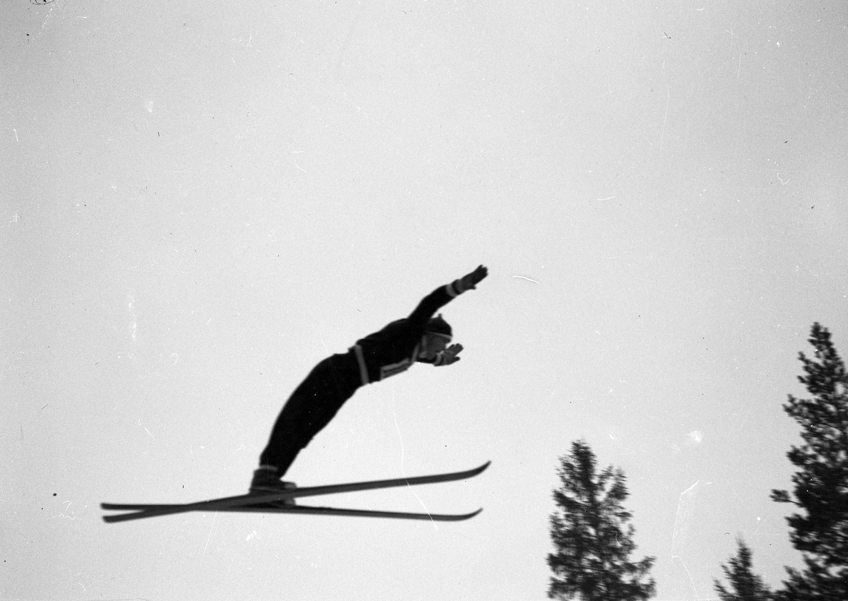 Måsbergsbacken, hoppremiär. Arbetarbladet. 18 februari 1951.