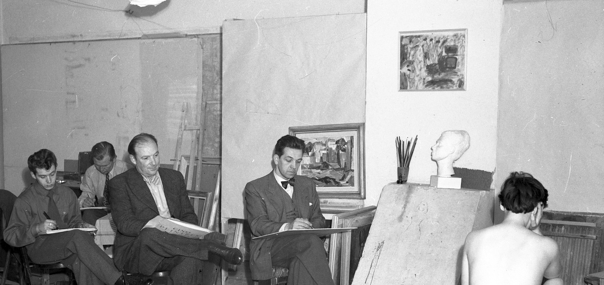Brynäsateljen, målarskola med modell. 30 oktober 1950.