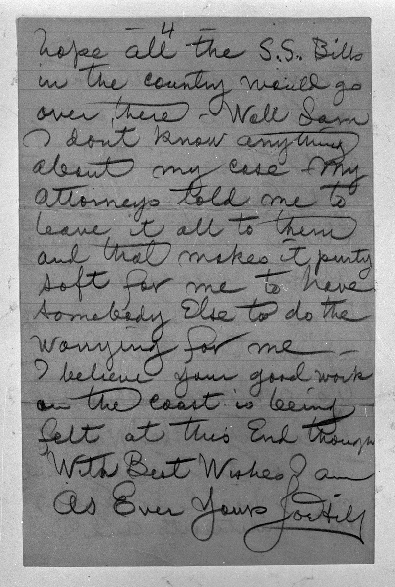 Reprofoto av brev som Joe Hill (Joel Hägglund) skrivit, 9 september 1915.
